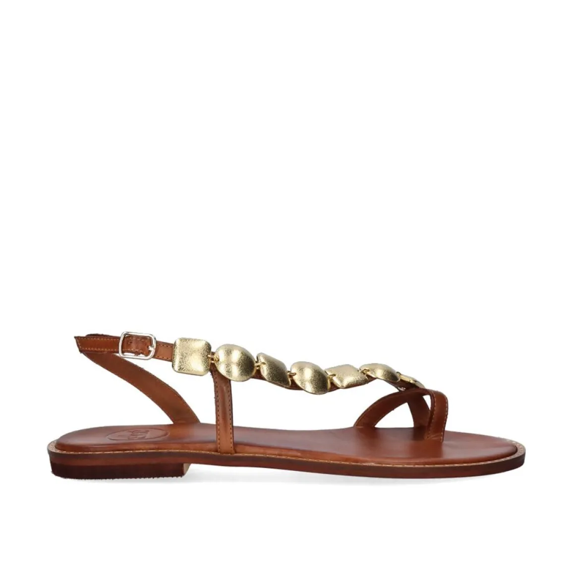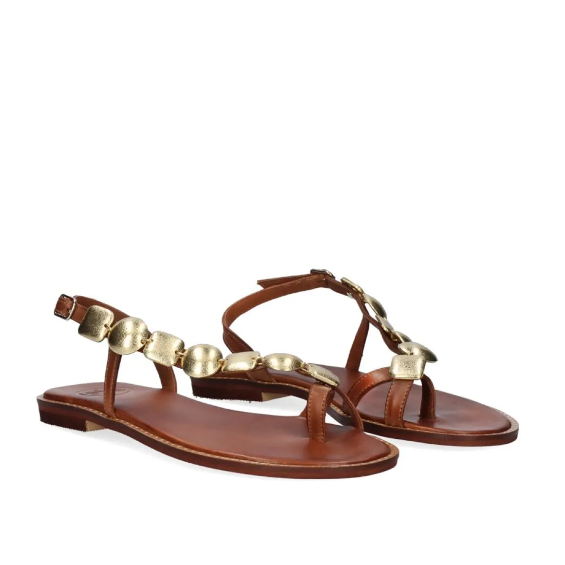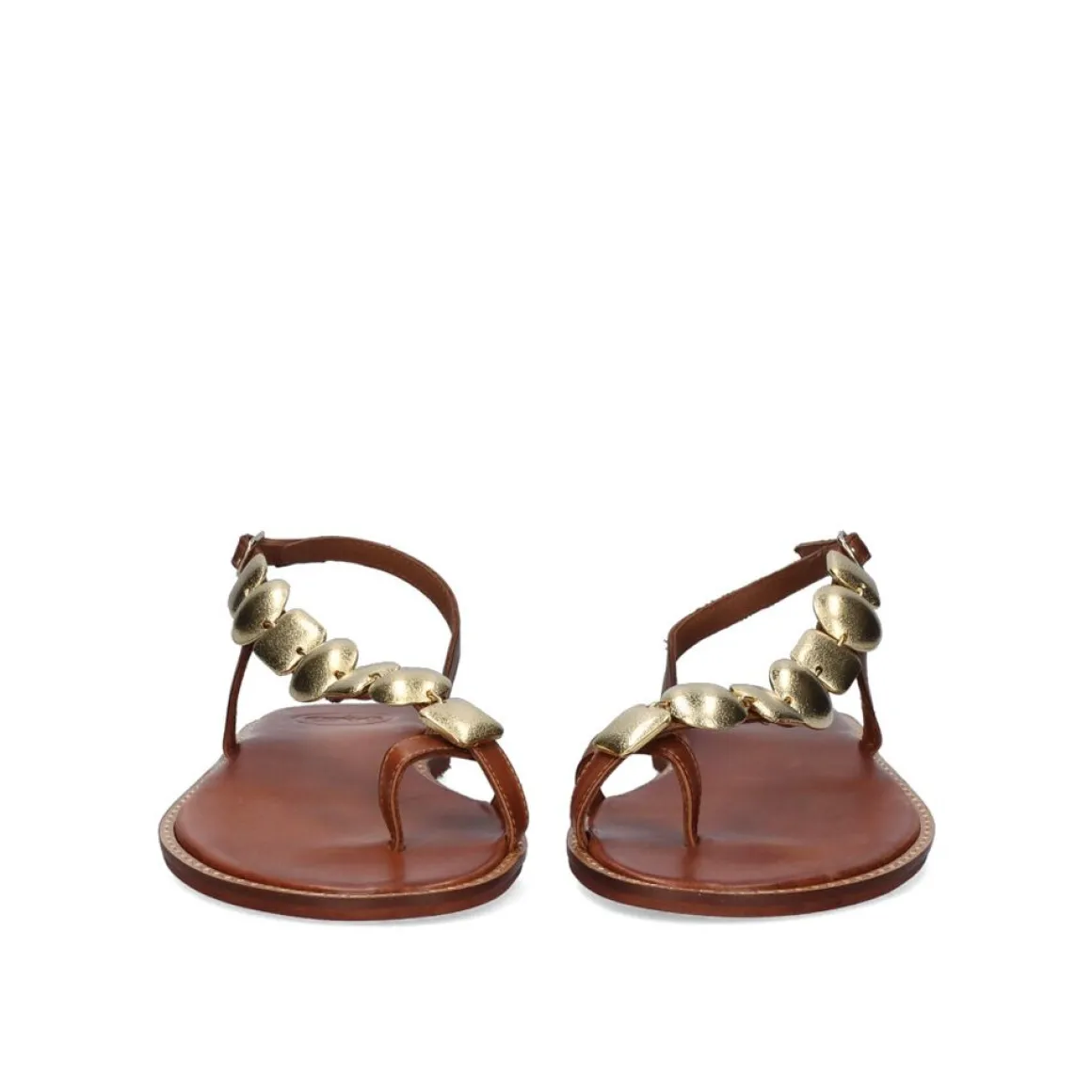 Sandalia De Couro Plana Fechada No Calcanhar Com Uma Fivela E Detalhes Dourados.