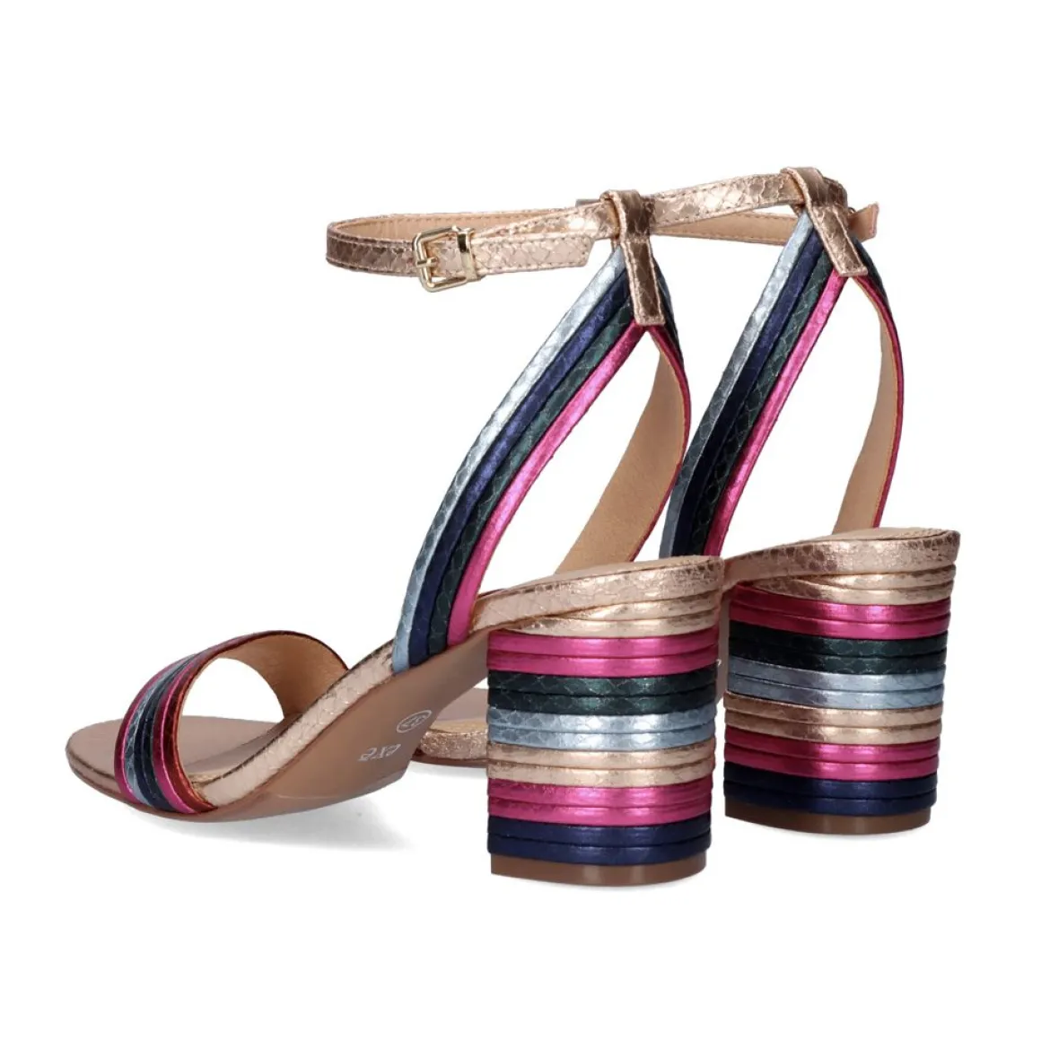 Sandalia Multicolorida Com Efeito De Escama De Cobra. Tem Um Salto Largo De 7 Cm E Tem Um Fecho De Fivela. Seu Corte E Sola Com Material Sintetico, A Palmilha E De Couro.