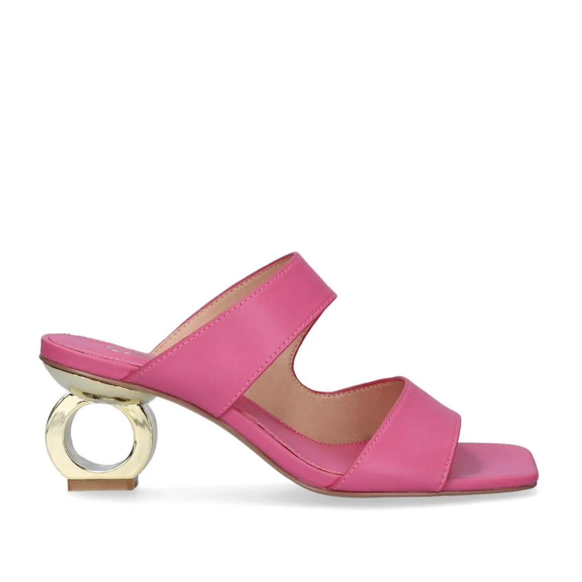 Sandalia Na Cor Rosa Com Salto Baixo De 6,5 Cm. Seu Corte E Sola Sao Feitos De Material Sintetico, A Palmilha E De Couro.