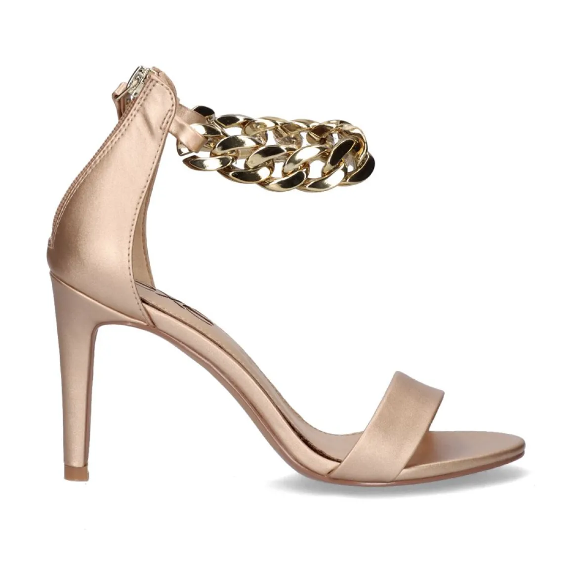 Sandalia De Salto Alto Cor Champanhe Com Fecho De Correr Atras, Fecho No Tornozelo Com Detalhe De Corrente Dourada. Altura Do Salto De 9 Cm.
