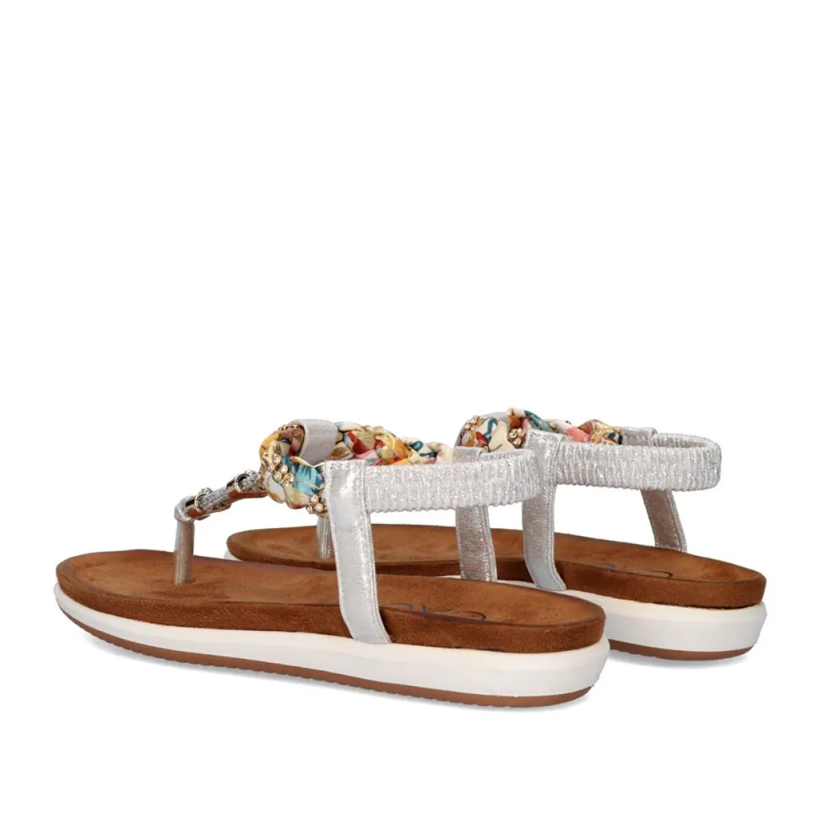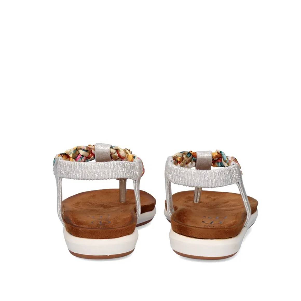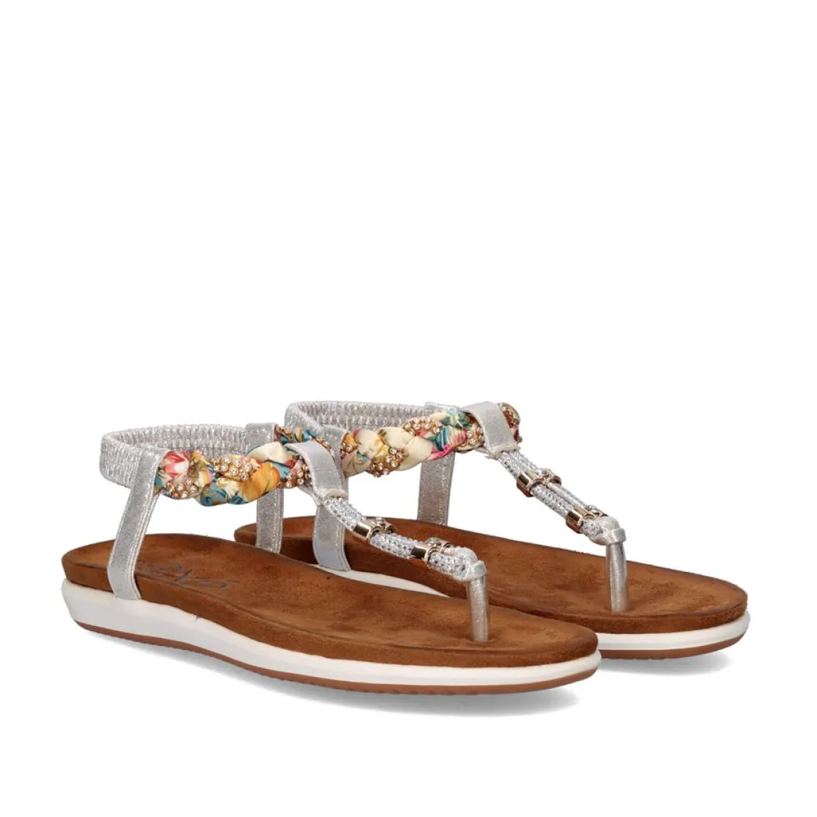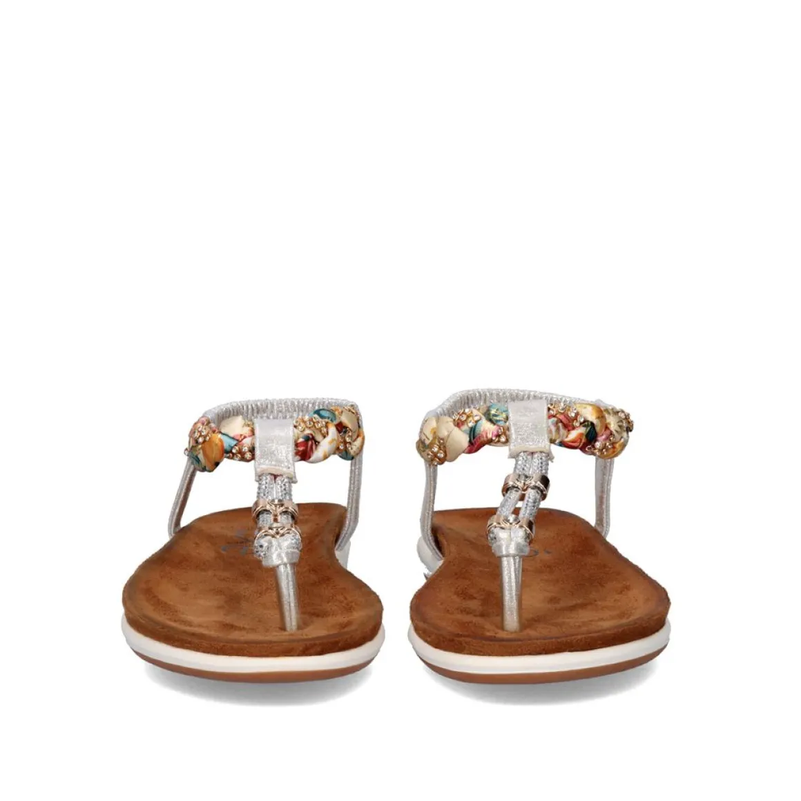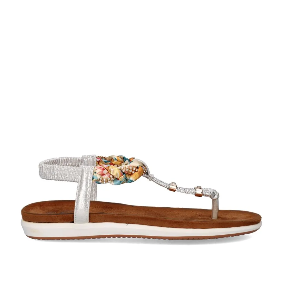 Sandalia Rasa De Bico Sintetico Prateado Com Detalhes Brilhantes Em Toda A Tira Da Biqueira E Detalhes Em Tecido Trancado.