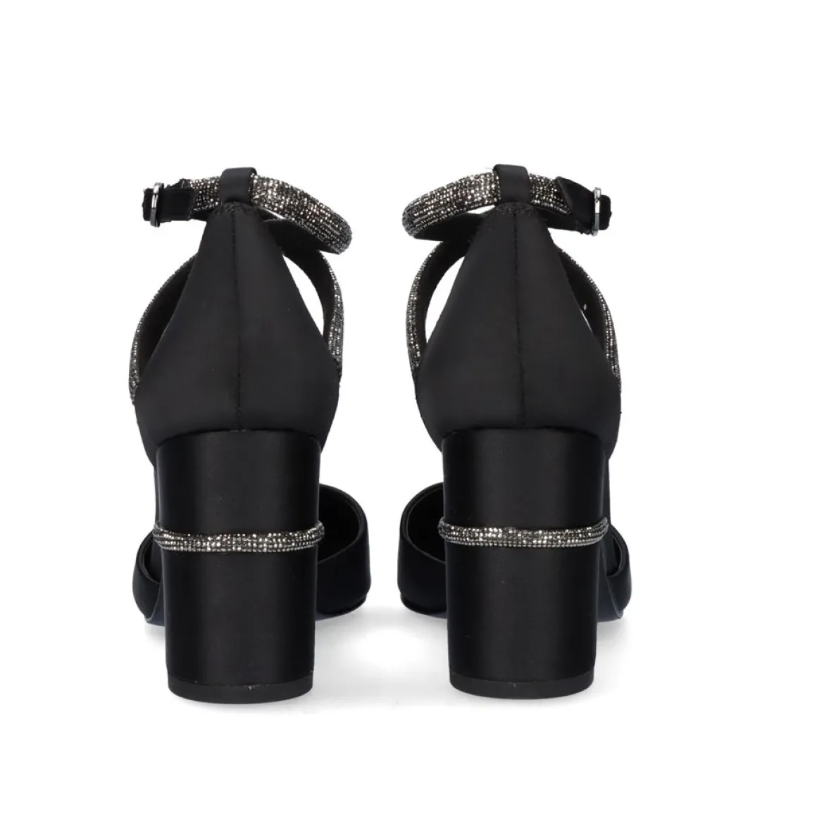 Sapato De Salto (>8 Cm) Em Preto. Seu Corte E Sola Sao Feitos De Material Sintetico, A Palmilha E Feita De Couro. Tem Um Fecho De Fivela E A Altura Do Calcanhar E De 8,5 Cm.In De Adicao, Tem Brilhos Decorativos Nas Alcas Do Tornozelo E No Calcanhar.