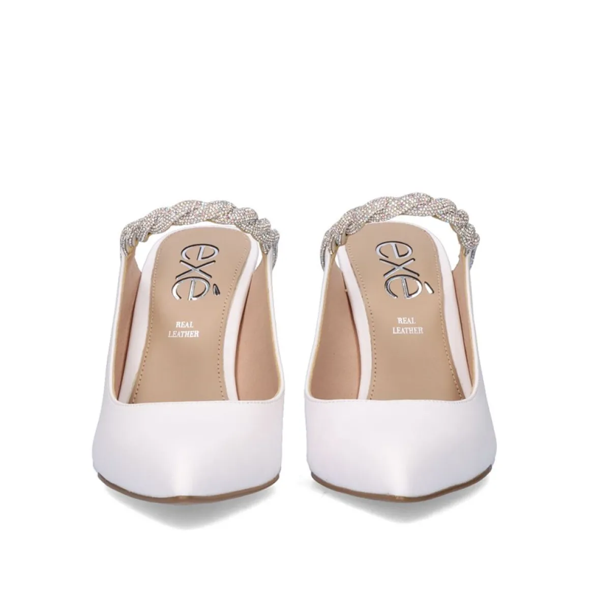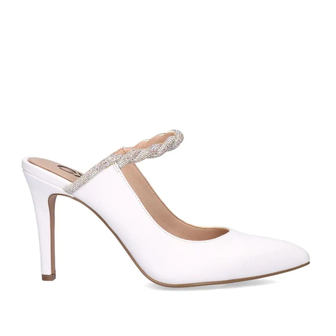 Sapatos De Salao Na Cor Branca Com Trancas Brilhantes Como Um Decorativo. Tem Um Corte Sintetico E Sola, A Palmilha E De Couro. Seu Calcanhar Mede 9 Cm.