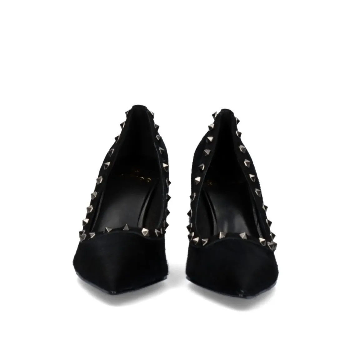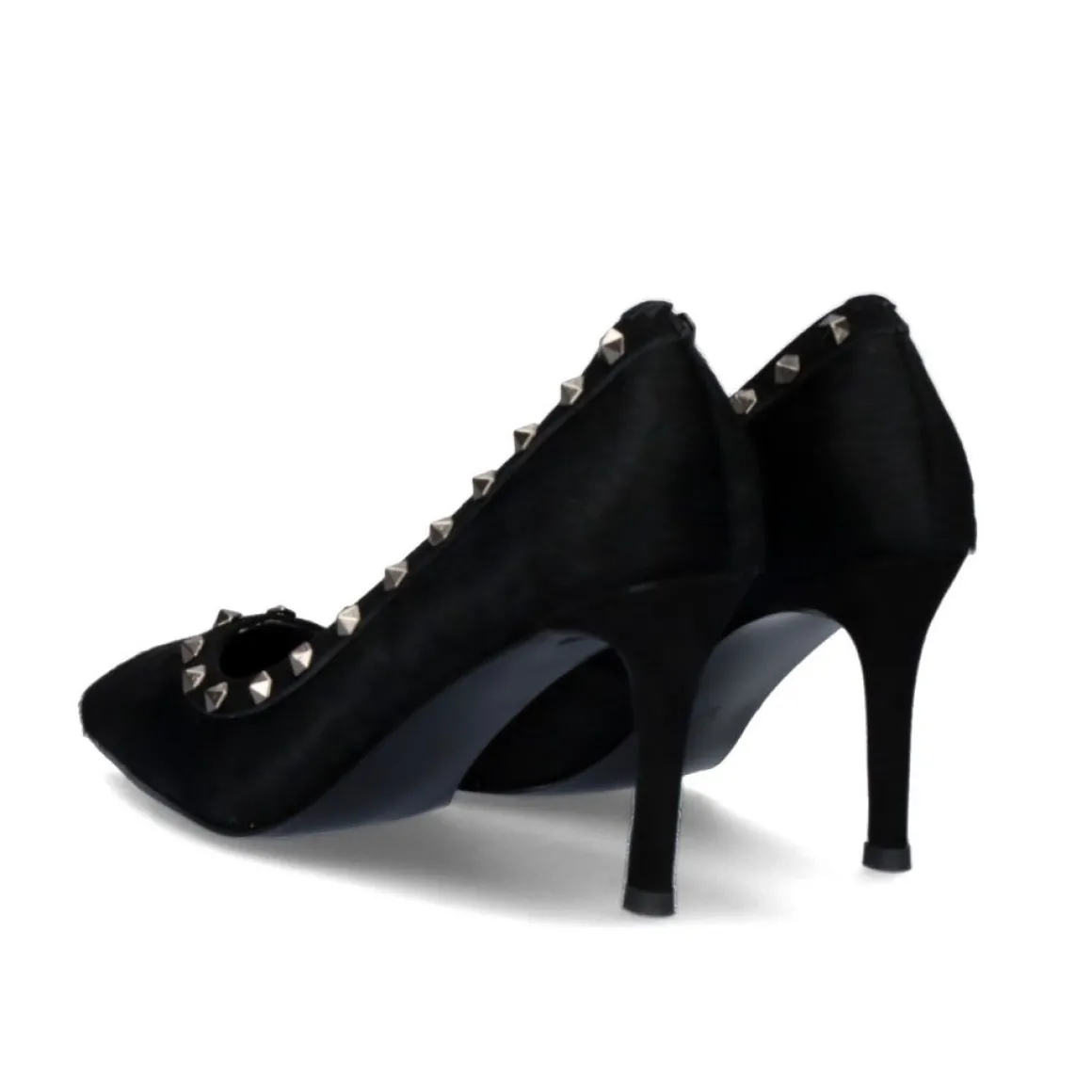 Chaussure A Talon Haut De 9 Cm De Couleur Noire Avec Des Clous Argentes Aux Extremites, En Cuir Et Materiaux Synthetiques.