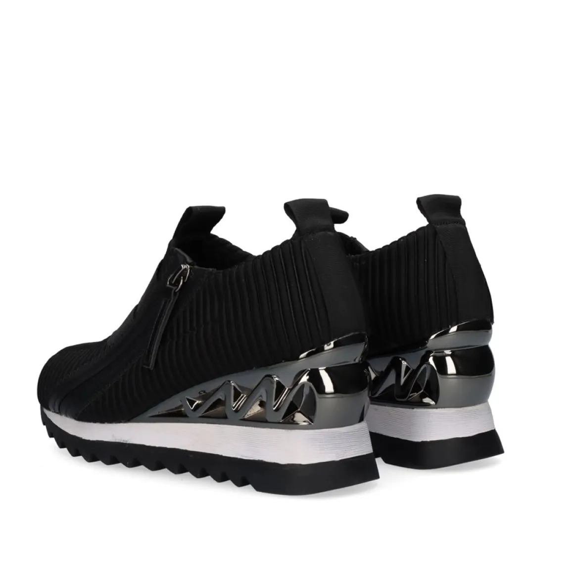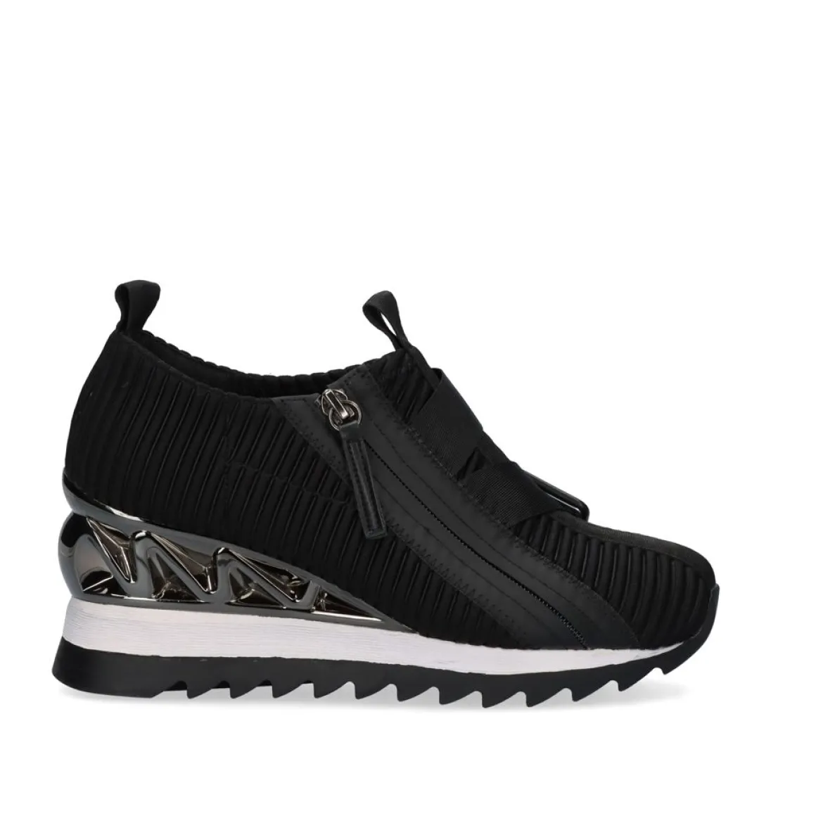 Tenis Em Cunha Em Preto. Seu Corte E Palmilha Sao Feitos De Material Textil, A Sola E Feita De Material Sintetico. Tem Uma Cunha De 7,Medio E Fecho Com Fecho De Correr.