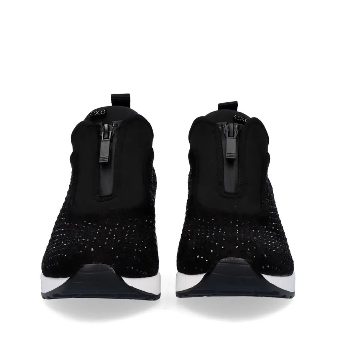 Sneaker Plataforma Ex24 Em Preto Ocn Brilhantes