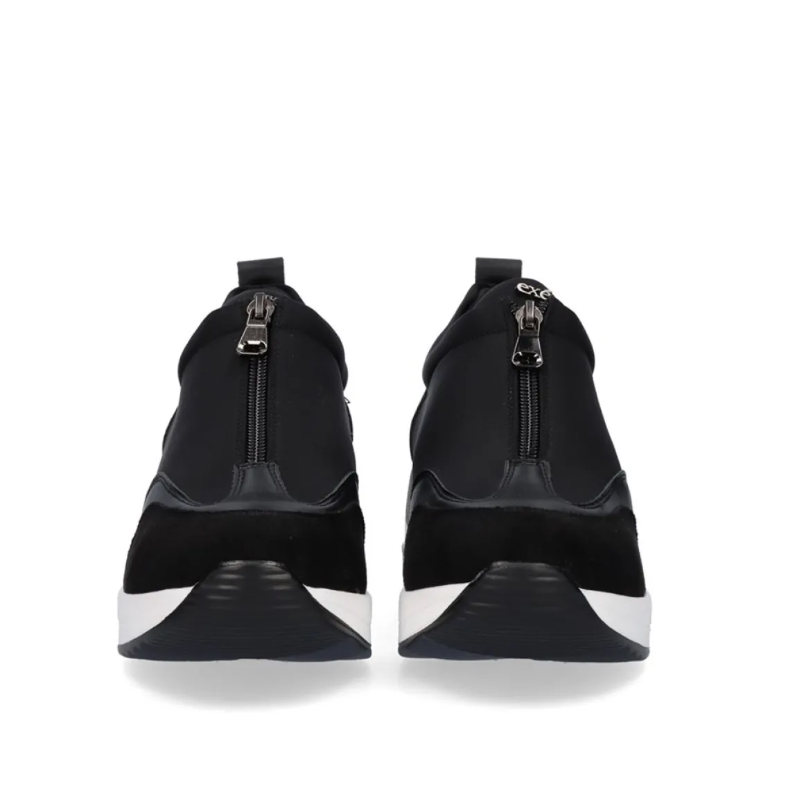 Sapatilha Com Cunha De 6 Cm Em Preto. Seu Corte E Palmilha Sao Feitos De Material Textil, A Sola E Feita De Material Sintetico. Tem Um Fecho Com Fecho De Correr.