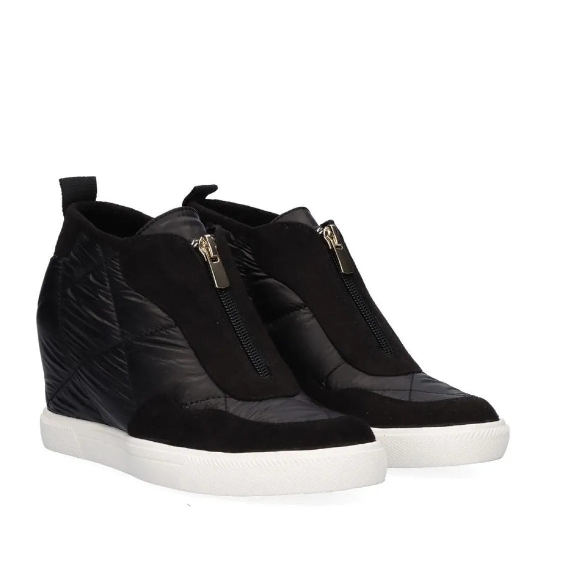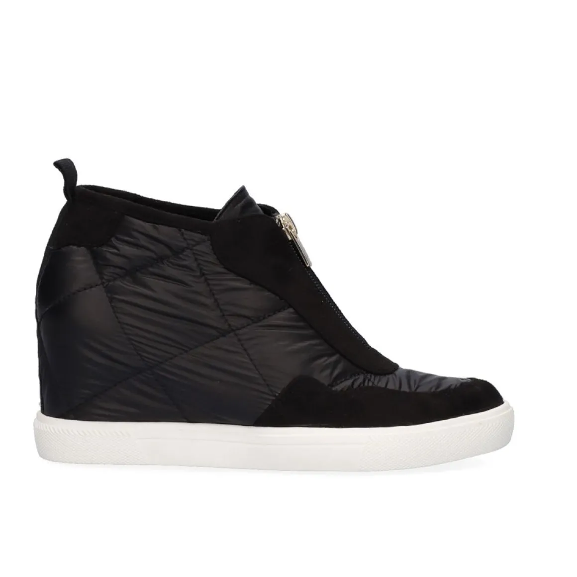 Tenis Em Preto Com Cunha Interna De 7 Cm. Seu Corte E Sola Sao Feitos De Material Sintetico, A Palmilha E Feita De Couro. Alem Disso, Tem Um Fecho De Ziper.