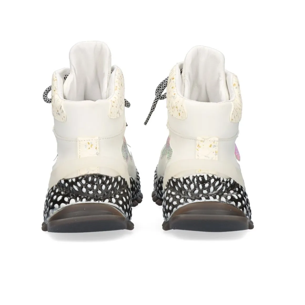 Tenis Na Cor Offwhite Com Cor Brilhante E Prateada. Seu Corte E Palmilha Sao Feitos De Couro, A Sola E Feita De Material Sintetico De 4,5 Cm. Tem Fecho De Renda E Um Ornamento Na Zona Do Calcanhar.