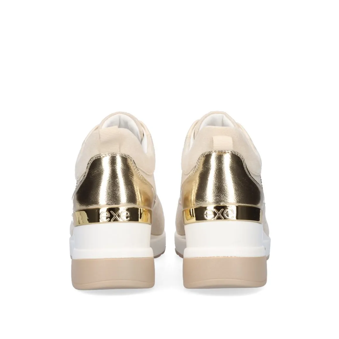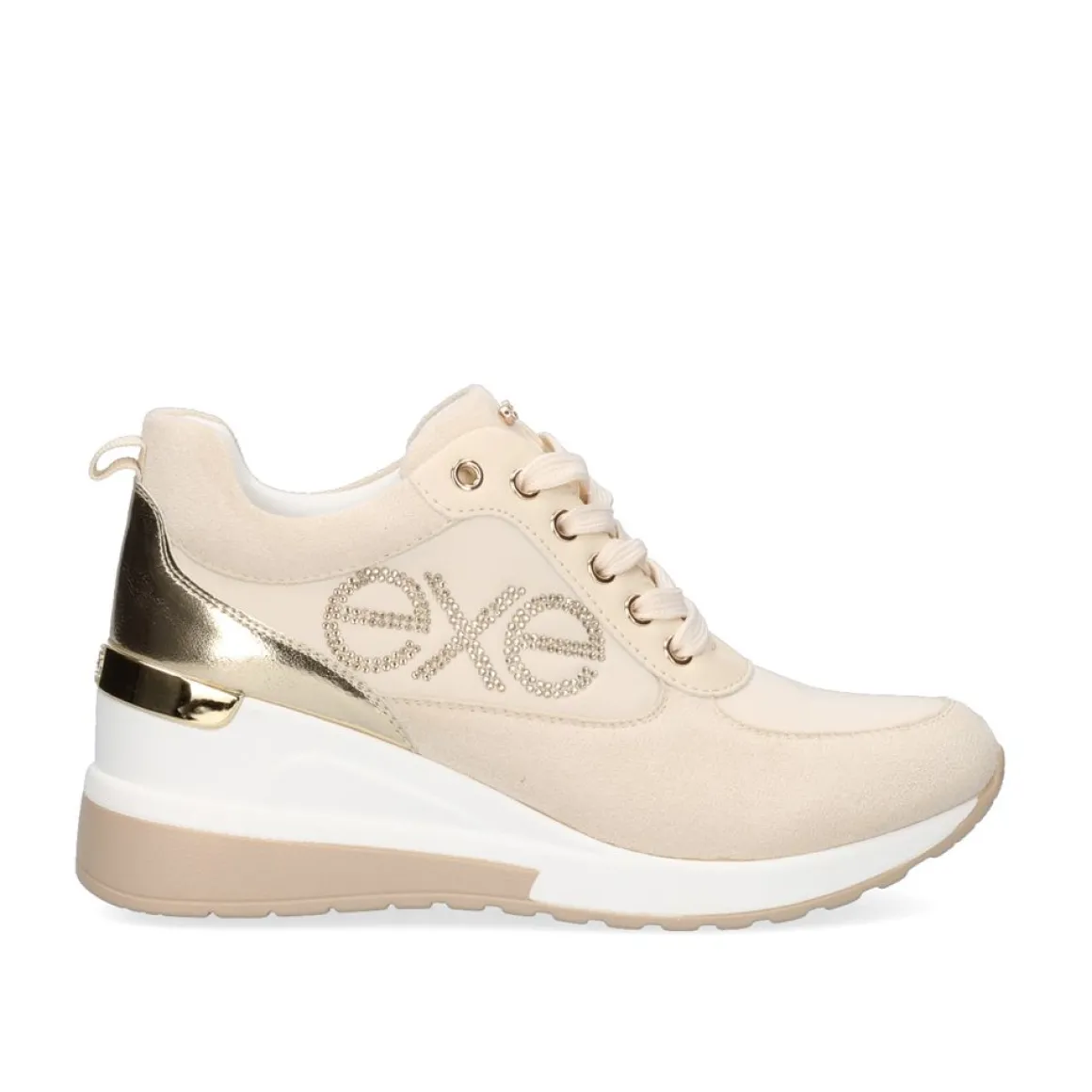 Tenis Dourados Com Cunha De 7 Cm E Ziper Ornamental. Seu Corte E Sola Sao Sinteticos, Sua Palmilha E Feita De Material Textil E Tem Fechamento De Renda.