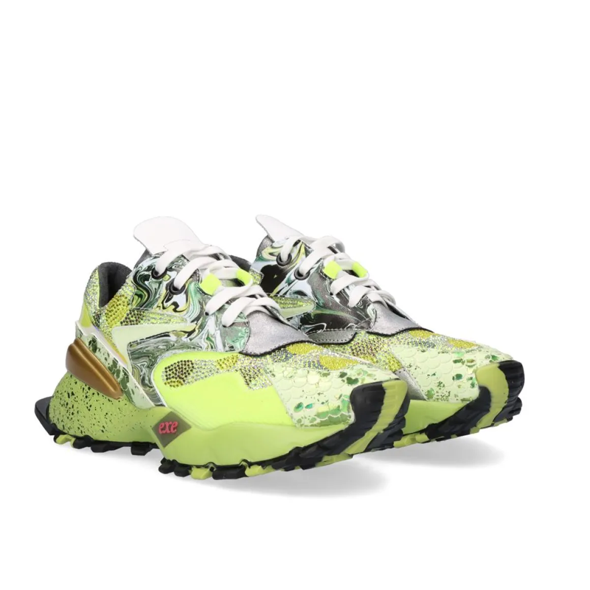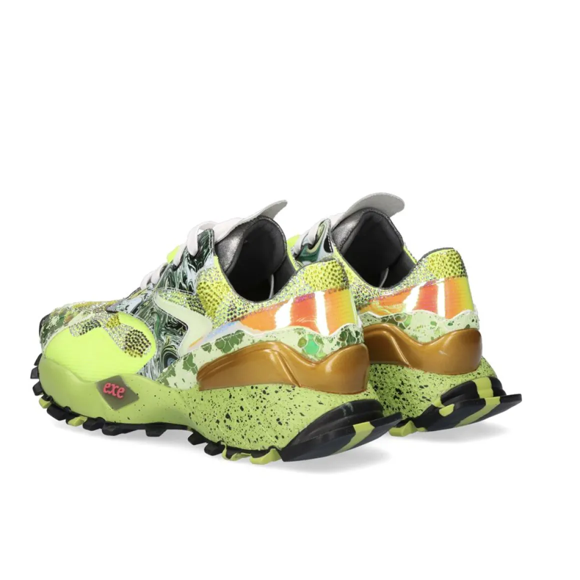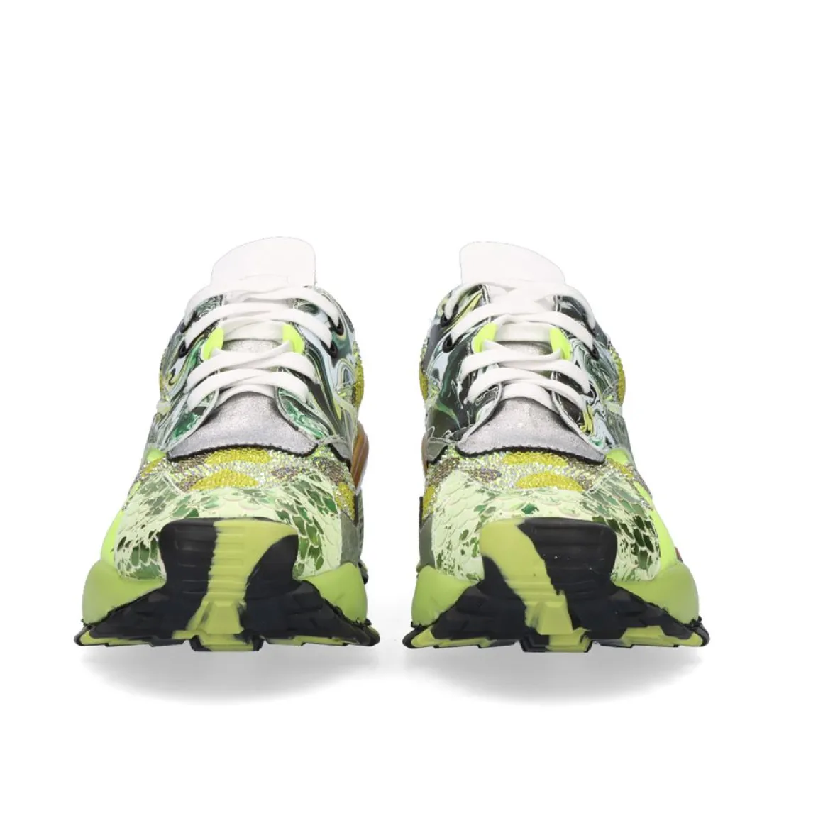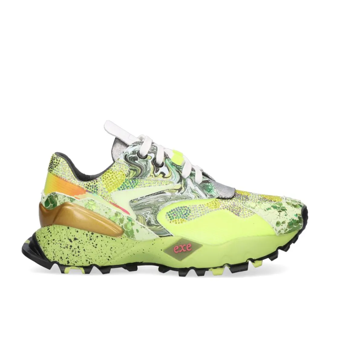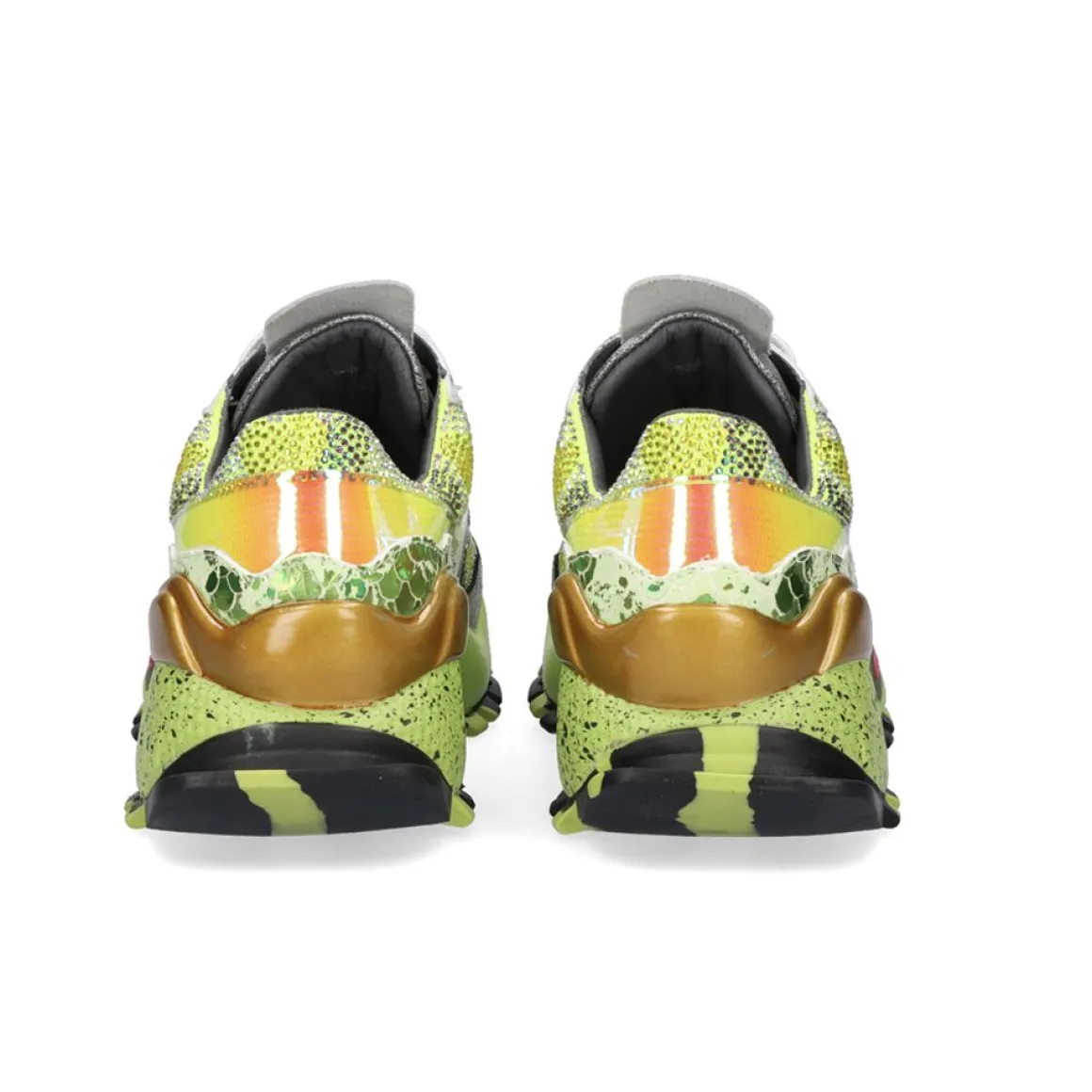 Tenis Na Cor Limao Com Brilhos Decorativos. Seu Corte E Palmilha Sao Feitos De Couro, A Sola E Feita De Material Sintetico. Tem Fecho De Renda E Uma Sola De 4 Cm.